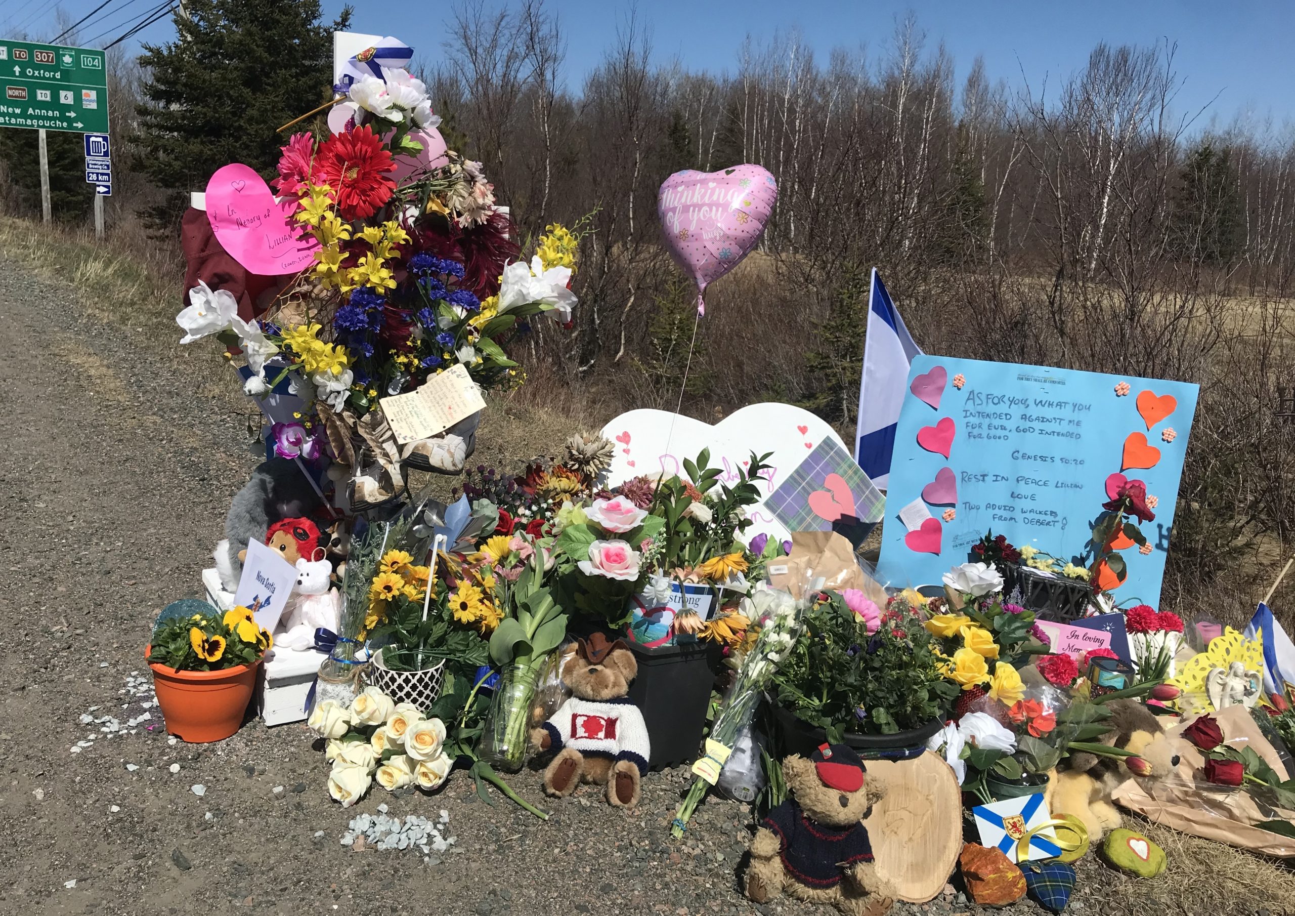 在德伯特(Debert)以南的普莱恩斯路(Plains Road)还有两个纪念馆,这是两名医护人员周日上午在自己的车里被枪杀的地点。