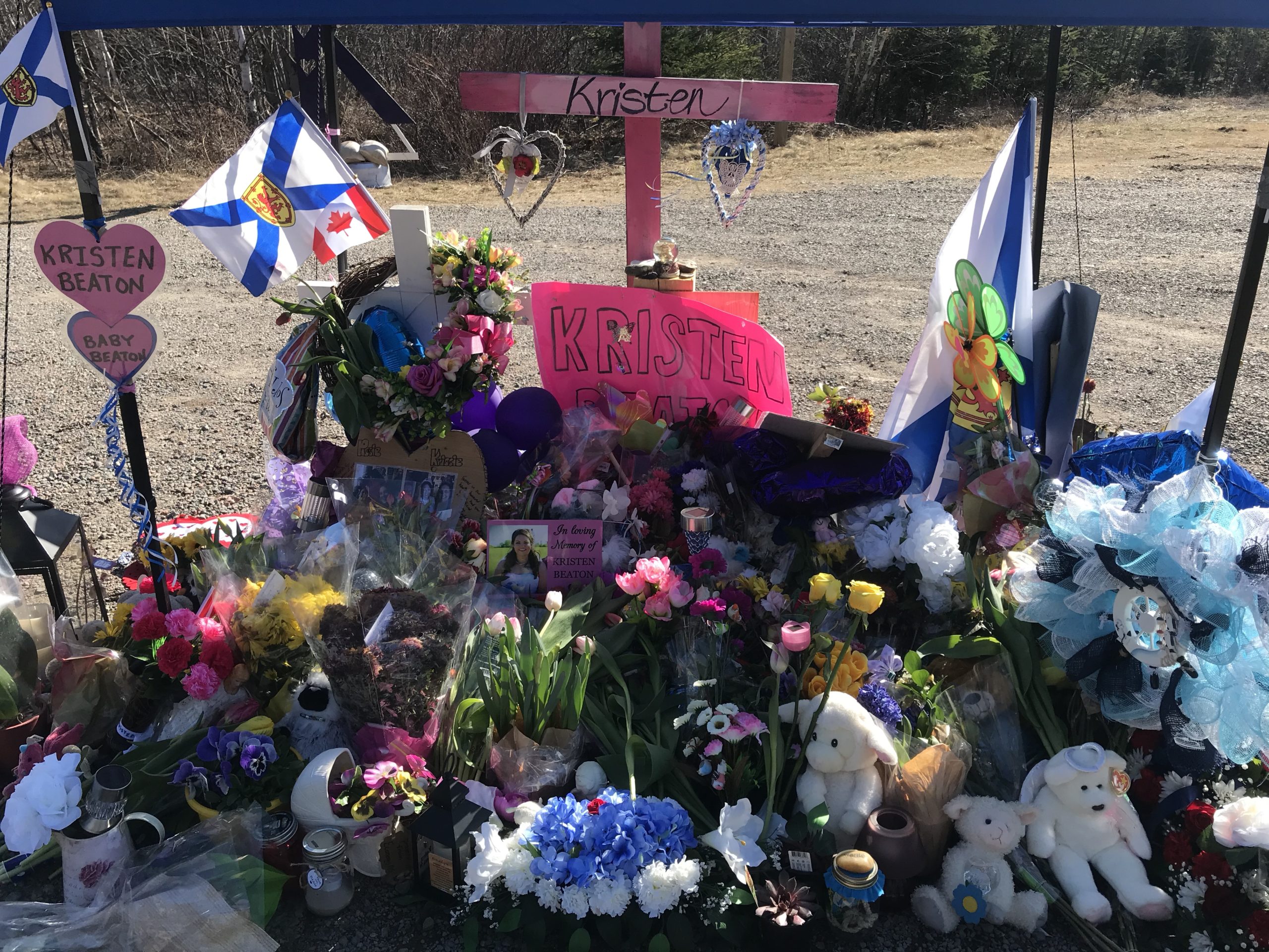 Kristen Beaton的路边纪念馆 - 她被枪杀的地方 - 距离韦伯特距离Glenholme约12公里,RCMP表示,GW位于10:21,距离公路4号高速公路10:21,10公里。