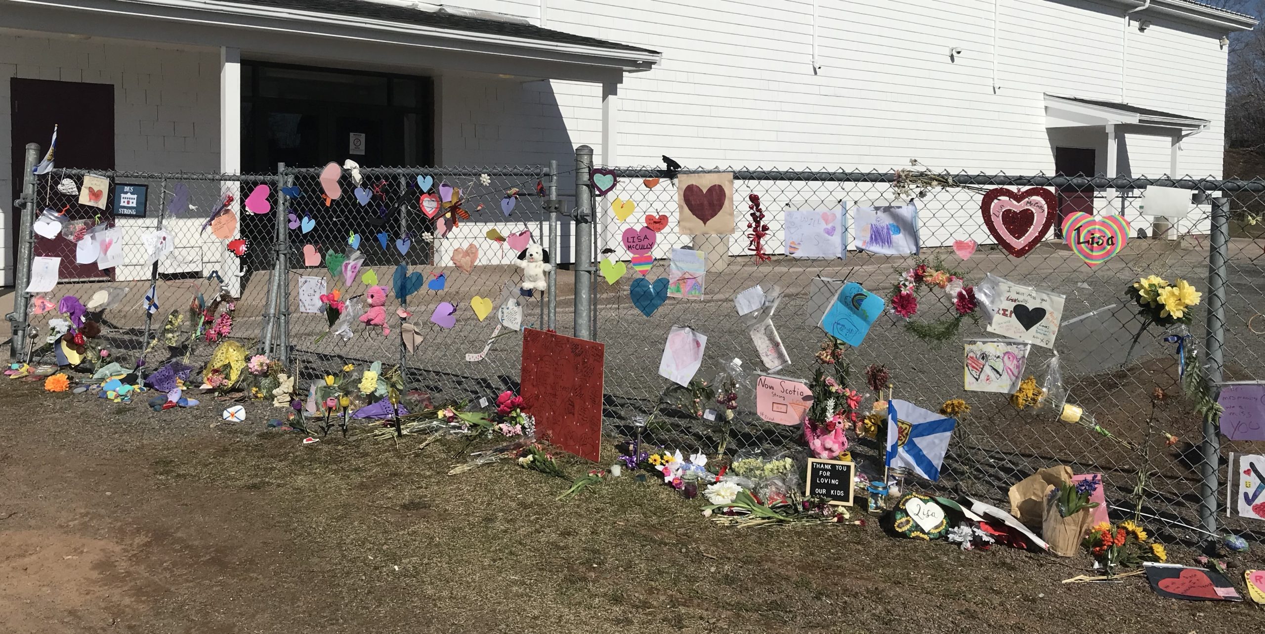 杜伯特小学周围的围栏也被改变为纪念Lisa McCully的纪念品。非常亲爱的老师在Portapique的星期六晚上被杀死。