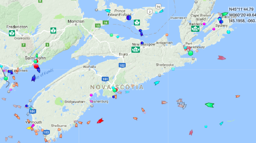 新星斯科舍岛周五上午9点。地图:Marinetraffic.com.