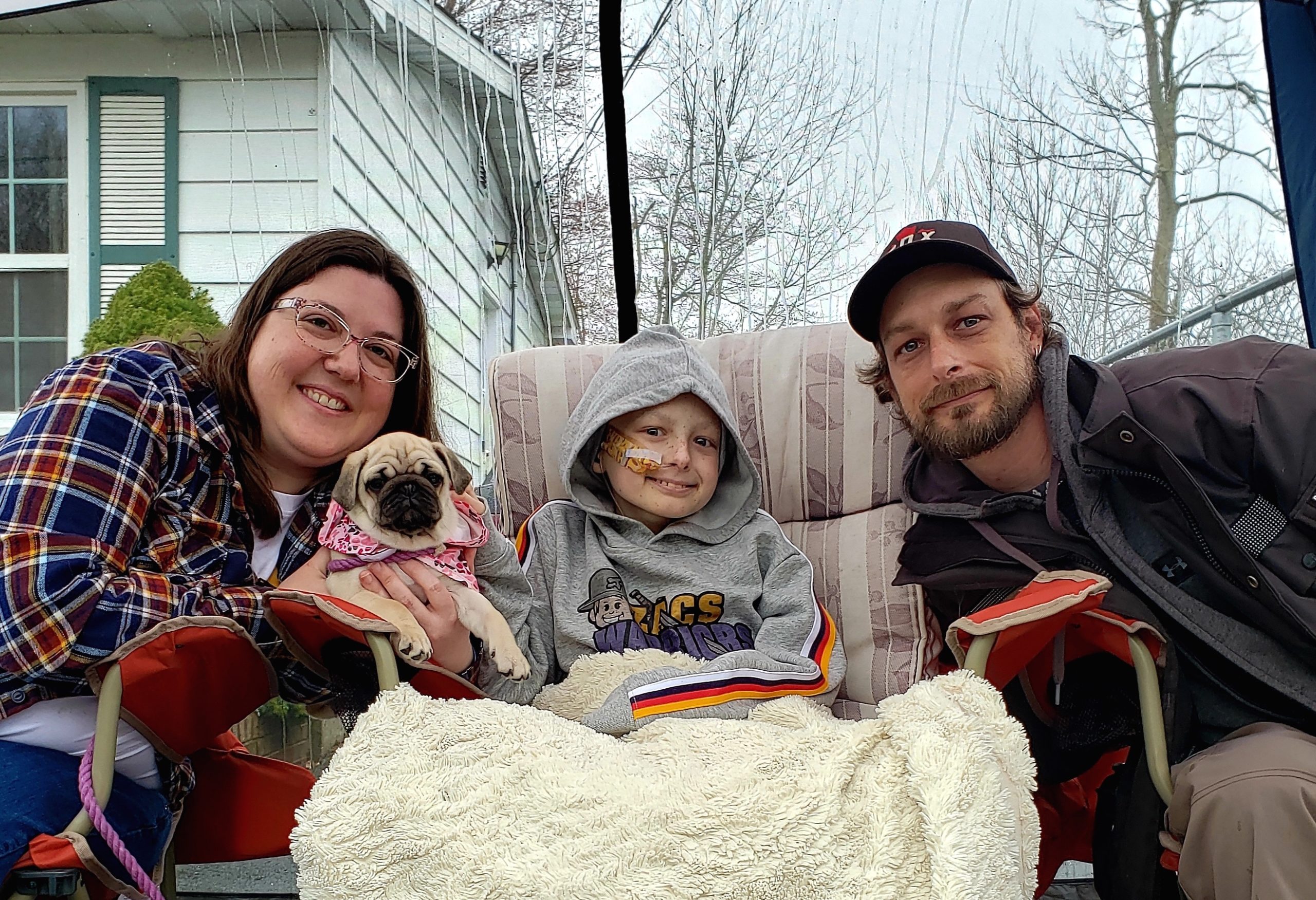 Zac Connolly与他的父母安吉拉和克里斯和新的哈巴狗小狗,快乐。照片:Yvette d'Entremont
