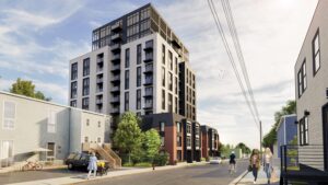 Gottingen街维多利亚大厅后面的13层建筑方案效图。照片:人力资源管理/理解工作室