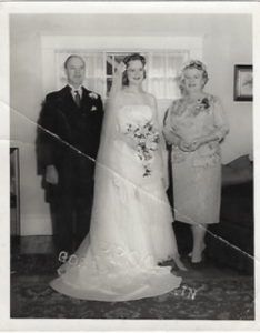 简·莱恩·邓肯与母亲阿比·j·莱恩和父亲弗雷德里克·a·莱恩在婚礼上。照片:Jean Lane Duncan