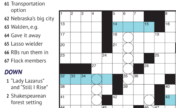 显然,我不是唯一一个厌倦了填字游戏线索的人,疲惫不堪。在过去的几年里,新的网点和建设者已经到了现场,具有娇气的线索和新的观点。还有一对构造师,姐妹李塔和蒂斯威廉姆斯,生活在达特茅斯。他们的首次谜题似乎在3月12日出现在喷墨,发布“女性的填字游戏 - 顺幕妇女,跨妇女,妇女和女性对齐的构造师。”