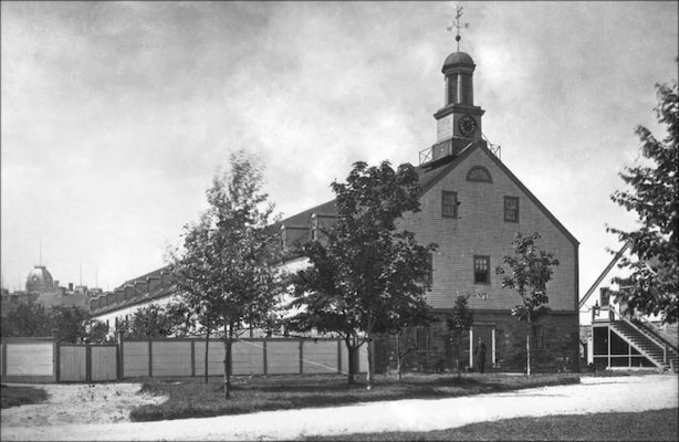 事实证明英国制造时钟是一个幸存者。1772年它安装在船坞的一家商店,一个精彩,巨大的建筑物在这里看到的C1883档案照片。