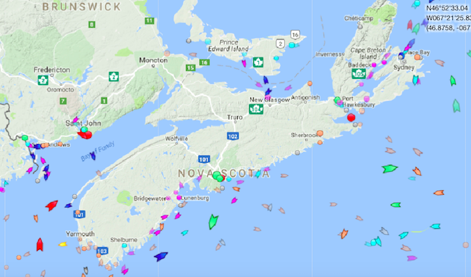 新星斯科舍周周五上午9:15海洋。地图:Marinetraffic.com.