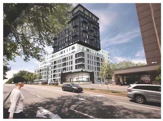 在那里她再次在星期二的理事会会议上,弹出在建筑渲染罗比和佩佩尔街的拐角处,亚特兰蒂斯酒店后面的发展计划: