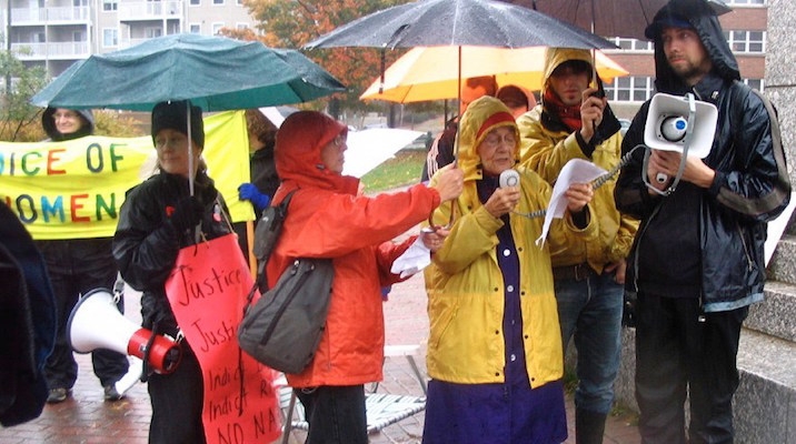 我很想看到贝蒂·彼得森(Betty Peterson)、穆丽尔·达克沃斯(Muriel Duckworth)和许多其他领导这座城市和平运动的女权主义长者的雕像。也许有一天,我们会看到挑战资本主义、父权制和种族主义殖民军事机器的女性代表。她们采取了激进的行动,把自己绑在桥上抗议核武器。