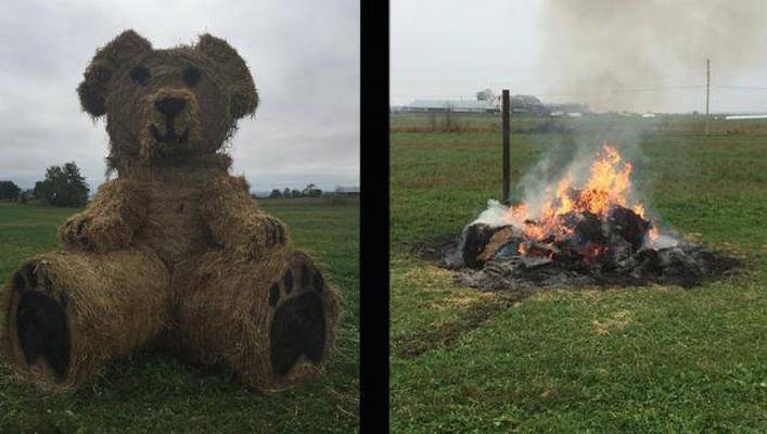 有人放了布莱克·詹宁斯的干草捆泰迪熊着火了。