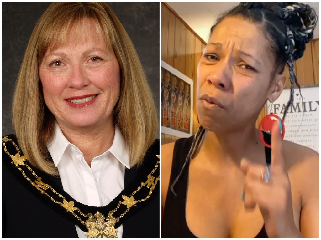 新格拉斯哥市长南希·迪克斯(左)被指控在2021年9月的“黑人的命也是命”街头绘画活动上袭击安吉拉·鲍登(右)。