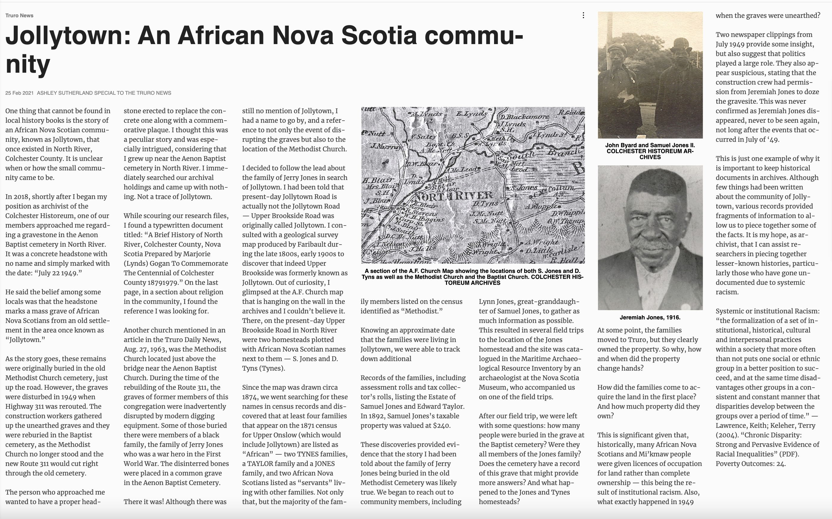 一篇2021年2月由阿什利·萨瑟兰(Ashley Sutherland)撰写的文章科尔切斯特Historteum上周在新斯科舍省的一些黑人/非洲人Facebook群组中重新出现。