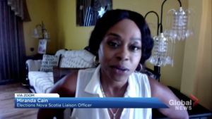 星期一,米兰达凯恩是选举Nova Scotia的外展官员发言来自全球新闻的琥珀关于她和其他人的工作将传统的边缘化群体纳入民意调查,这是即将到来的选举。