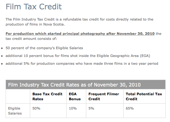 我们还不知道惠伦提案的细节,但在2011年,新不伦瑞克政府取消了40%的工资补贴,而且电影公司离开了这个省的en masse,许多公司即将到达新斯科舍。