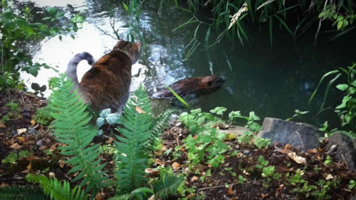 这是一只带着海狸的猫咪来结束你的晨读。