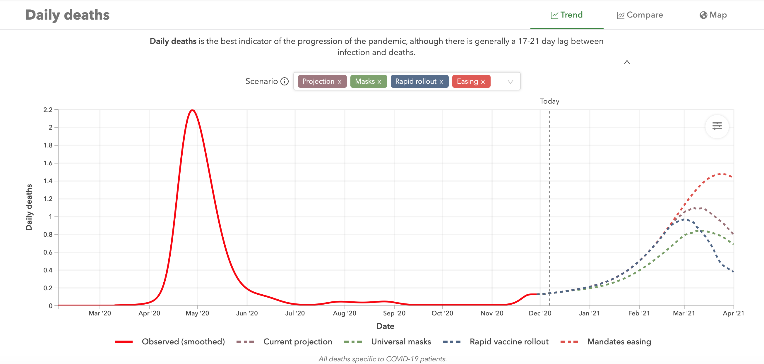 上周,一些新闻报道援引了预测在这里来自华盛顿大学健康计量与评估研究所(IHME)。作为环球邮报加拿大广播公司(CBC)专家安德鲁·科因(Andrew Coyne)援引IMHE的话说,“从现在到1月的第一周,加拿大每天的新感染人数将接近三倍,人均感染人数将在12月中旬的某个时候超过美国。与此同时,死亡率预计将增加四倍多。”