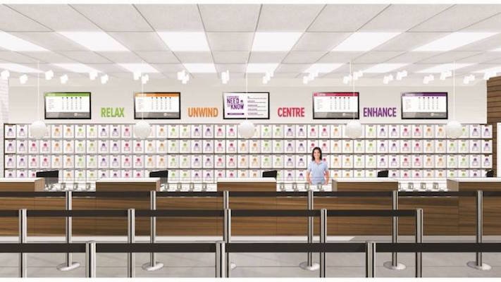 在正在翻修的11家NSLC门店中,交易将在磨砂玻璃幕墙后面的一个区域进行。