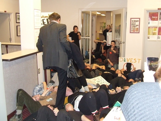 在占领校园两天之后,学生们受到了大学校长罗伯特·坎贝尔(Robert Campbell)的一封电子邮件的敦促本文“山A的总统散热器比你”在他的办公室是诬陷),以校董会向他们保证,“大学没有计划与从事剥离MTA.直接或谈判阵营的存在,“在百年大厅向总统办公室移动,坎贝尔,比你凉爽,迅速锁定门和隐藏。