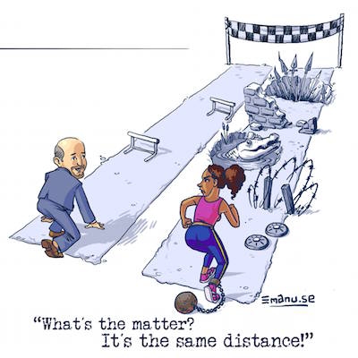 哦,你的意思就像黑人申请工作时被拒绝因为他们有一个黑色的姓?或者怎么样简历与“洋冠冕堂皇”的名字已经远远回调速度比那些白色的名字少了呢?
