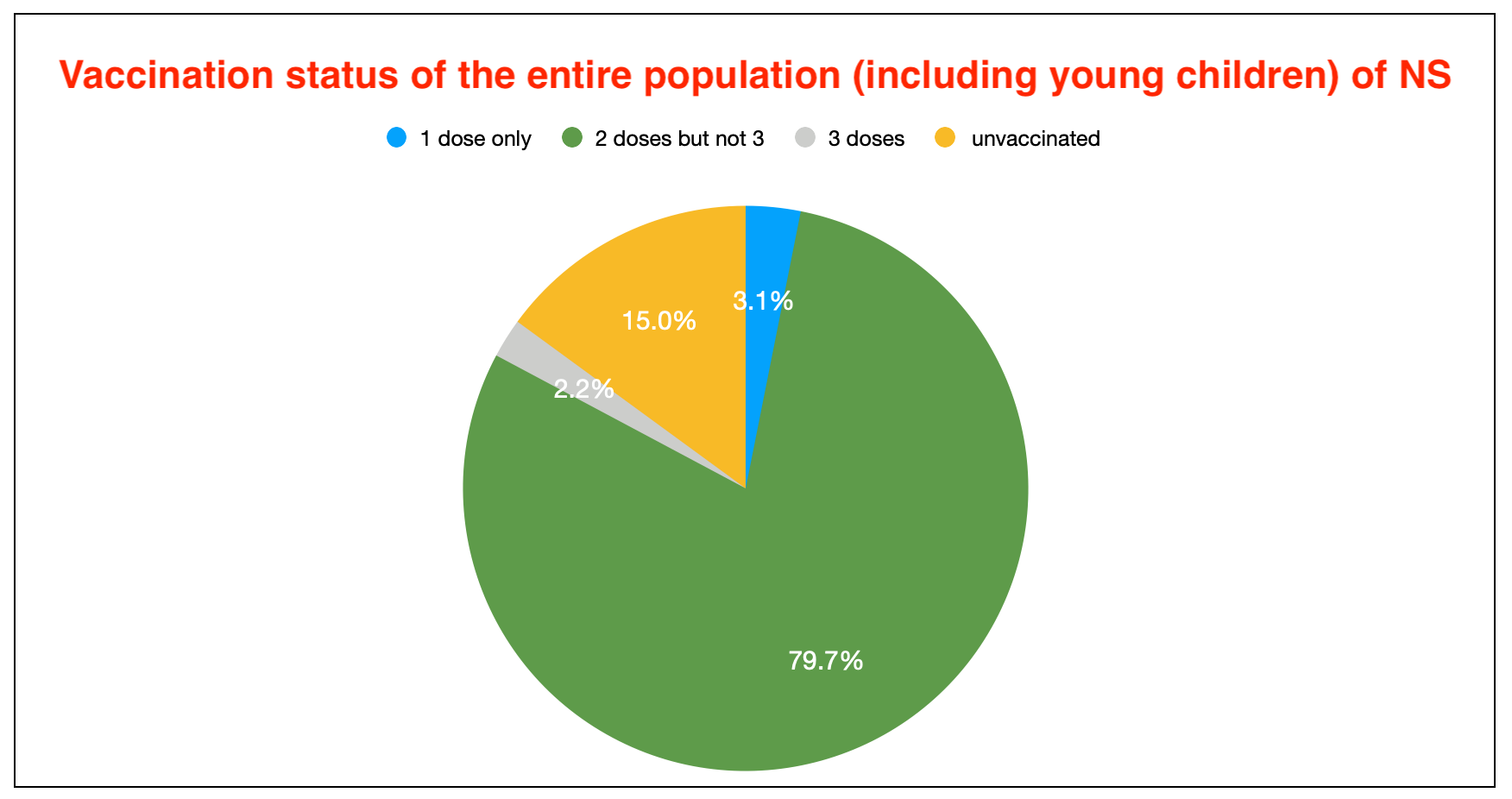 By end of day yesterday, 84.7% of the entire population (including young children) have received at least one dose of vaccine, and 81.5% have received at least two doses.