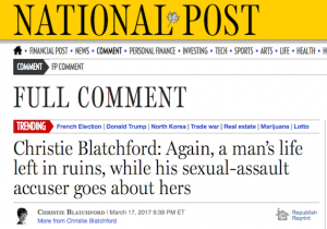 特拉·麦克弗森(Tarrah McPherson)周四发出通知,她打算起诉布拉奇福德(Blatchford)和《邮报》(Postmedia) 2017年3月17日在《国家邮报》(The National Post)和其他《邮报》报纸上发表的一篇专栏文章,该专栏于2017年3月17日在线刊登,并于翌日印刷出版。它的标题是:同样,一个人的生命留在废墟中,而他的性,侵犯原告去约她”。