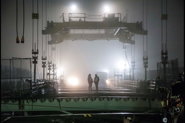 哈利法克斯的安格斯麦克唐纳大桥上,钢铁工人正准备升起最后一段桥面。图片:Tim Krochak / Local Xpress