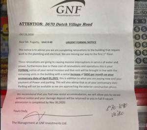 格蕾丝·福格蒂(Grace Fogarty)收到了房东GNF Investments的一封信,信中告诉她,从2021年4月1日起,她位于荷兰村路3670号的公寓租金将上涨650美元。