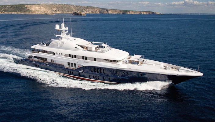 人们问我拴在木板路上的超级游艇的事。这是一个Sycara V.目前正由游艇经纪公司出租伯尼斯因为这东西卖不出去。它最多可以搭载12名乘客。“室内设计有第五大道顶层公寓的感觉,游艇使用的灵活性是主要设计目标之一。最显著的特色包括一个健身房、阳光甲板上的私人按摩室、一部电梯和一个海滩俱乐部。”你也可以租到它,每周只需58.5万欧元。