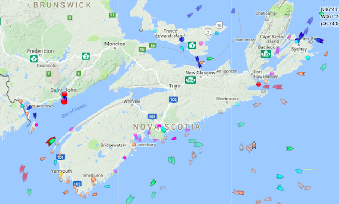 新斯科舍附近海域,周二上午八点半。地图:marinetraffic.com