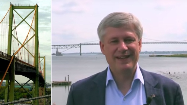 哈珀被抓住了假装安大略省约翰斯顿的奥格登斯堡-普雷斯科特桥是哈利法克斯。
