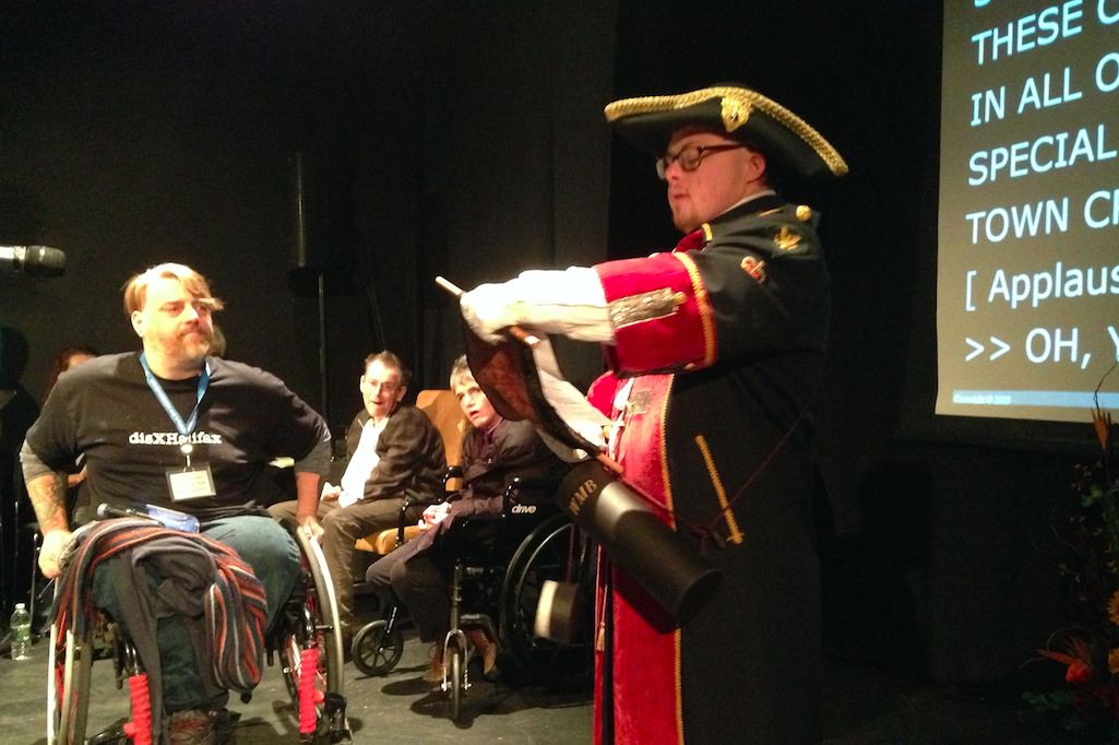 “残疾人是人们告诉故事,以照亮他们的生活,所以我们可以看到我们所有人的共同之处,”Paul Vienneau,仪式的仪式,他的轮椅在中心舞台上门。一名船员将该赛事拍摄,作为关于他成功的十字军事的纪录片的一部分,即为立法权利,以改善对政府服务的可行性。