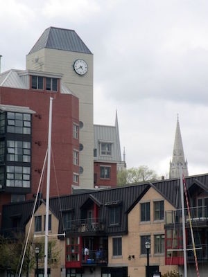 万豪酒店是由建筑师安迪·林奇(Andy Lynch)设计的,他还设计了Bishops Landing的开发项目,其中包括一座钟楼。