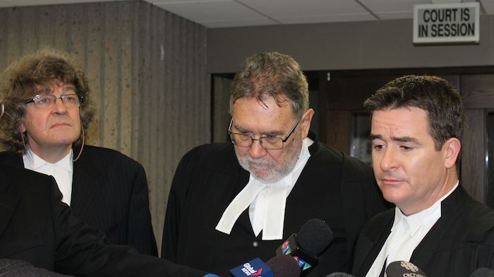 从左到右:格伦·阿松的律师詹姆斯·洛克耶、菲利普·坎贝尔和肖恩·麦克唐纳。照片:哈利法克斯审查员