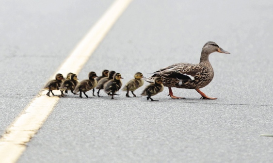 的鸭科我想提醒司机们,请为他们停车。