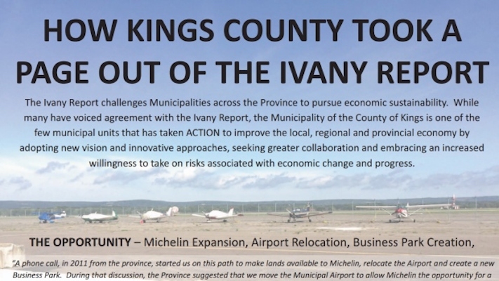 这则广告引用了该郡国王市的典狱长Diana Brother、CAO Tom MacEwan和一些米其林高管的话。它赞扬了重新安置沃特维尔机场(Waterville airport)的协议,预计米其林(Michelin)将进行扩建,并致力于开发一个商业园区。