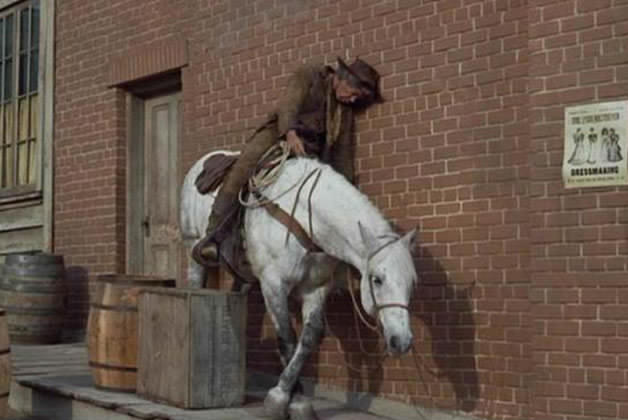 顺便说一句,牛仔和马的照片来自有史以来最滑稽的西部片之一。猫巴卢。最有趣的是,李·马文(如图)饰演一个酒鬼,他被雇来从一个同样由李·马文扮演的坏人手中救人。