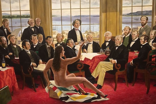 艺术家肯特·蒙克曼(Kent Monkman)用“他的性别流体、时间旅行的另一个自我——鹰酋长睾丸小姐(Miss Chief Eagle tetickle)”来引导游客了解加拿大的历史。这段旅程有时令人捧腹,但也常常令人心碎。蒙曼将博物馆收藏的历史文物与他的不朽画作和装置作品混合在一起。