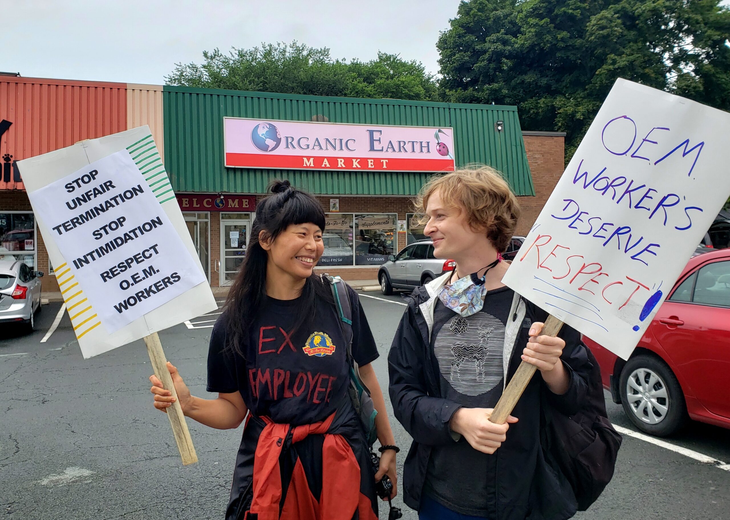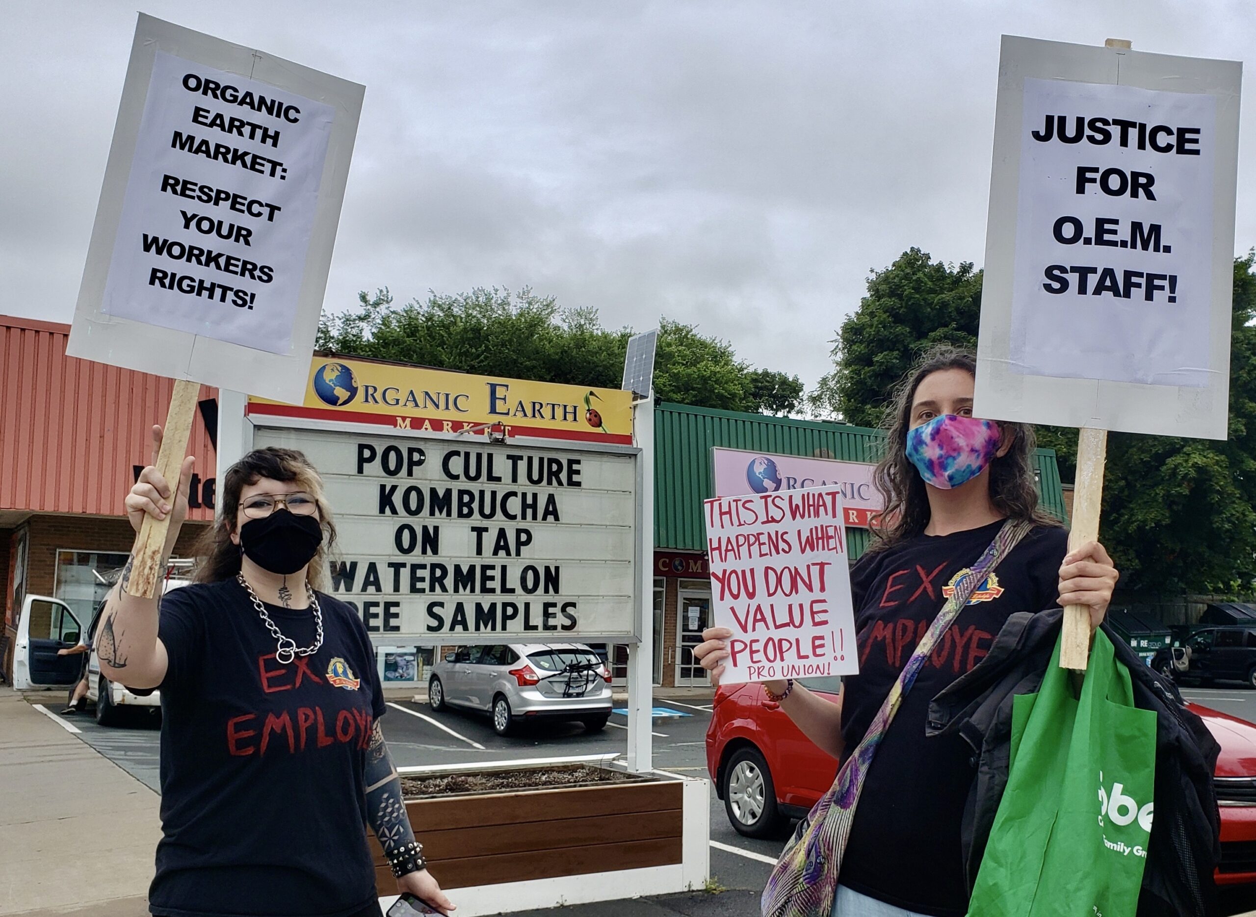 周一,有机地球市场的员工在昆普尔路的商店外抗议了两个小时,以非法解雇、骚扰和恐吓工人为由,强调他们向新斯科舍省劳工委员会提出的担忧。