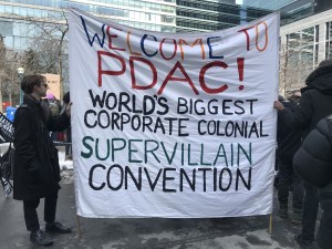 2020年3月1日,抗议者在多伦多参加加拿大勘探者和开发商协会的会议。照片:琼巴克斯特
