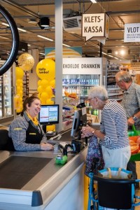 位于Vlijmen的Jumbo超市推出了一种聊天结帐功能,适合想要慢慢和收银员交谈的老年人。另外,请注意,收银员可以坐下!照片:大型超市。