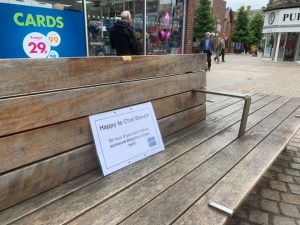 这些Happy to Chat长凳鼓励人们互相交谈,减少社区中的社会隔离。照片:Altrincham总部/ Facebook