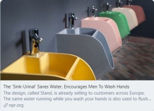 对于那些认为尿完后不需要洗手的男性,我们还能做些什么呢?也许这种水池小便池的设计会有所帮助虽然我觉得水槽和小便池靠得那么近很讨厌。