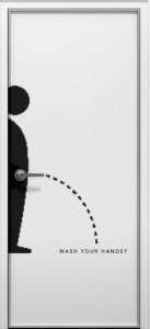 还有门上的那个提醒让男人离开时能看到?(全球洗手日活动将这样的标志称为“助推”,是提高洗手率的一部分)。