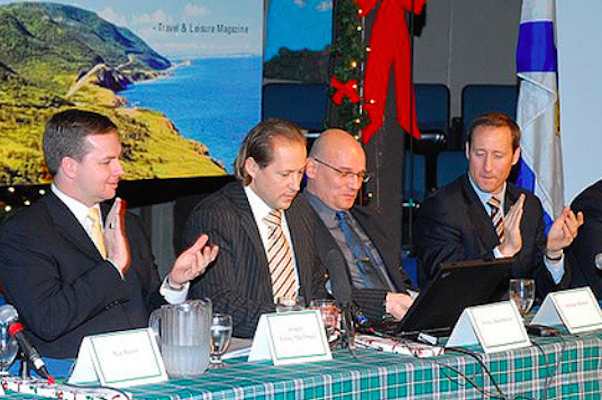 Peter MacKay和Rodney MacDonald出席了Cape Breton Island Developers Inc.的Christian Reinisch和Henric Bauermeister的新闻发布会。麦凯部长对耗资3亿美元开发路易斯堡高尔夫水疗度假村的宣布表示欢迎。