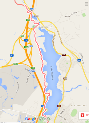 我偶尔会在树别公园的小路上跑步,我理解它的吸引力。它沿着查尔斯湖(Lake Charles)的背面走,常常能看到湖水,通常你听不到高速公路的声音,高速公路与小路大致平行。除了南端有一座陡峭的小山外,这条小路上有一些不太陡峭的小山丘,还有两座木桥横跨在小溪上。北端有一座高架,横跨在苏巴纳卡迪运河上。这条小路很漂亮。最重要的是,它远离使用更频繁的公园小径;你偶尔会遇到另一两个跑步者,也许还有一些山地自行车手,但这条小路通常人烟稀少,这对那些寻求独自跑步带来的孤独禅宗快感的跑步者很有吸引力。这并不是一条荒野小径,但因为离城市很近,所以很容易就能代替它。