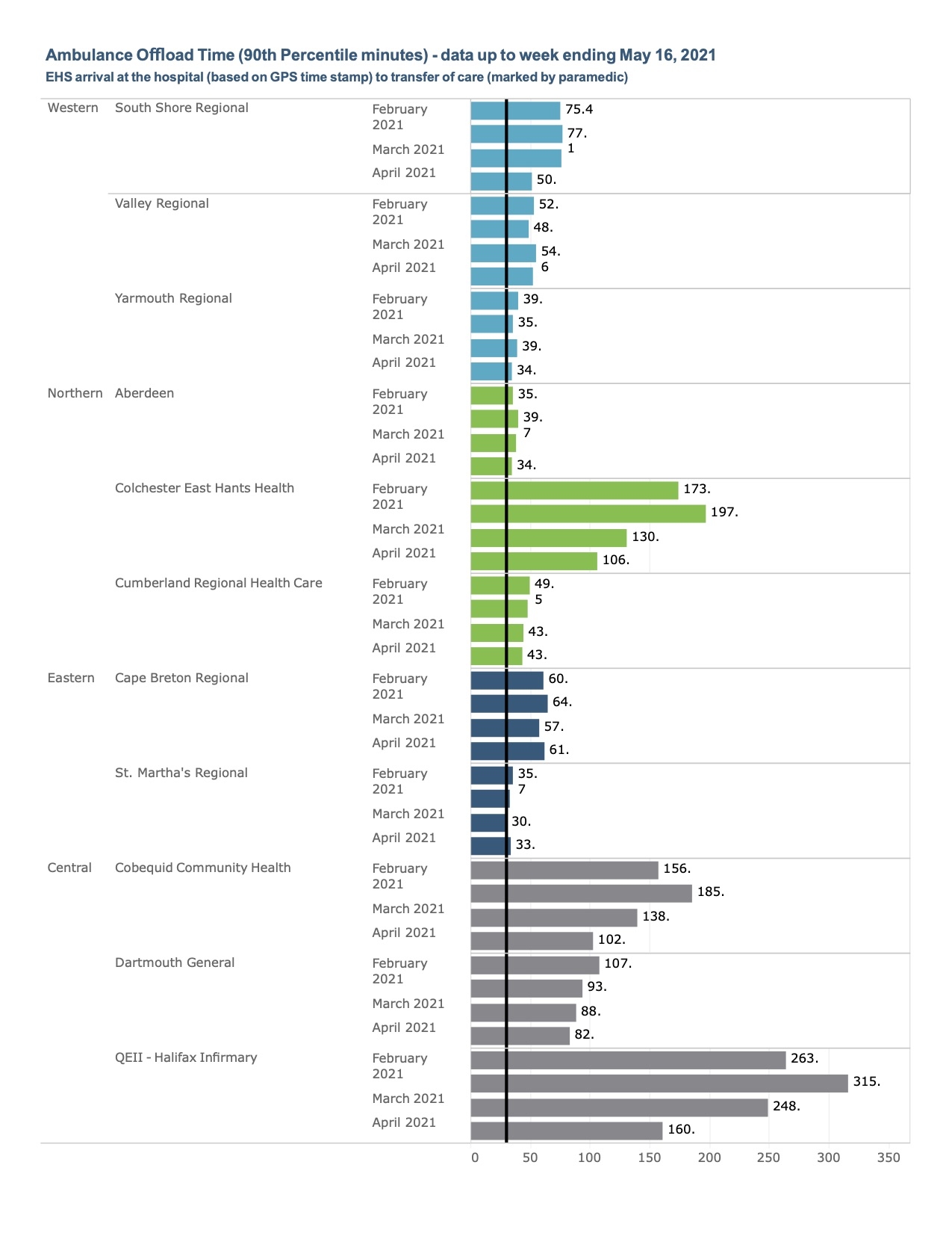 考官问及新斯科舍省卫生收到的信息显示等待时间正在下降特鲁罗,布里奇沃特,并在Cobequid社区卫生,达特茅斯常规,哈利法克斯诊所。这些改进是显著。但是,下面的图表也显示出在新城医院救护车等待仍低于30分钟的患者90%的目标要长得多。在特鲁罗,5月份平均等待1小时46分钟。在萨克维尔的Cobequid,它是1小时42分钟,而在哈利法克斯诊所,这是2小时40分钟,从5小时重大改进和15分钟的等待去年三月。