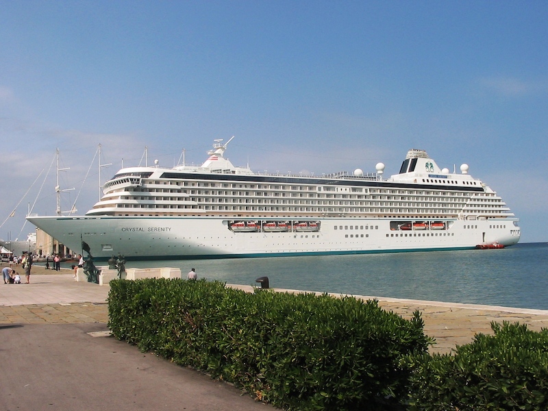 The Crystal Serenity, in port today, has been given an “F” grade by Friends of the Earth. Photo: bert76通过Wikimedia Commons