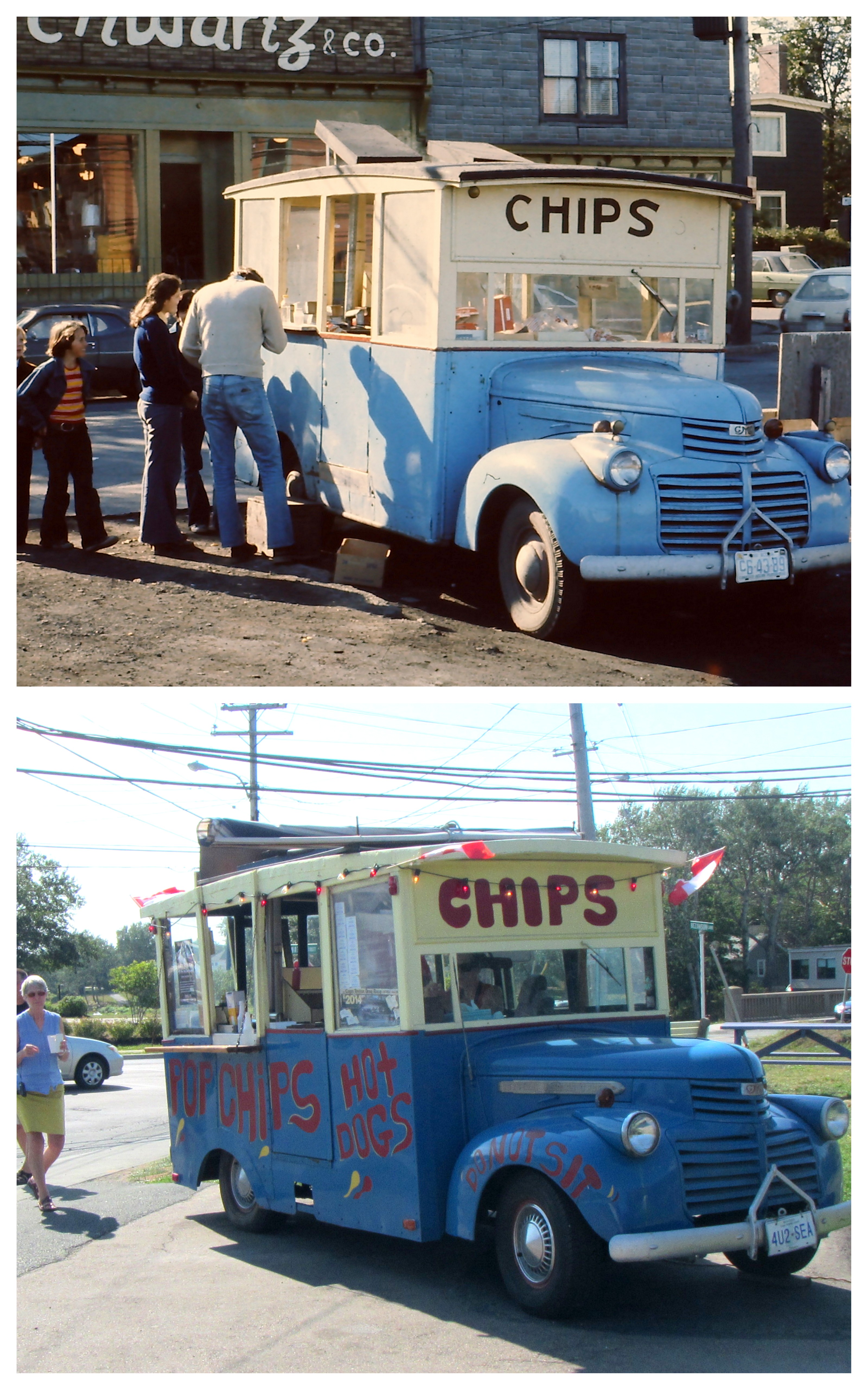斯蒂芬·阿奇博尔德(Stephen Archibald)上周向我们展示了悉尼的壁炉公园,今天带我们到处布雷顿角的工业区通常,将他现在看到的东西与他在“ 1970年左右”访问回来时所看到的东西进行比较,包括一辆芯片卡车,对不起,我,食品卡车仍在运行。“这辆食品卡车incunabulum has been working in Glace Bay since 1946,” says Archibald. “And no surprise the chips were great.” Top photo is from 1970, bottom photo from last week: