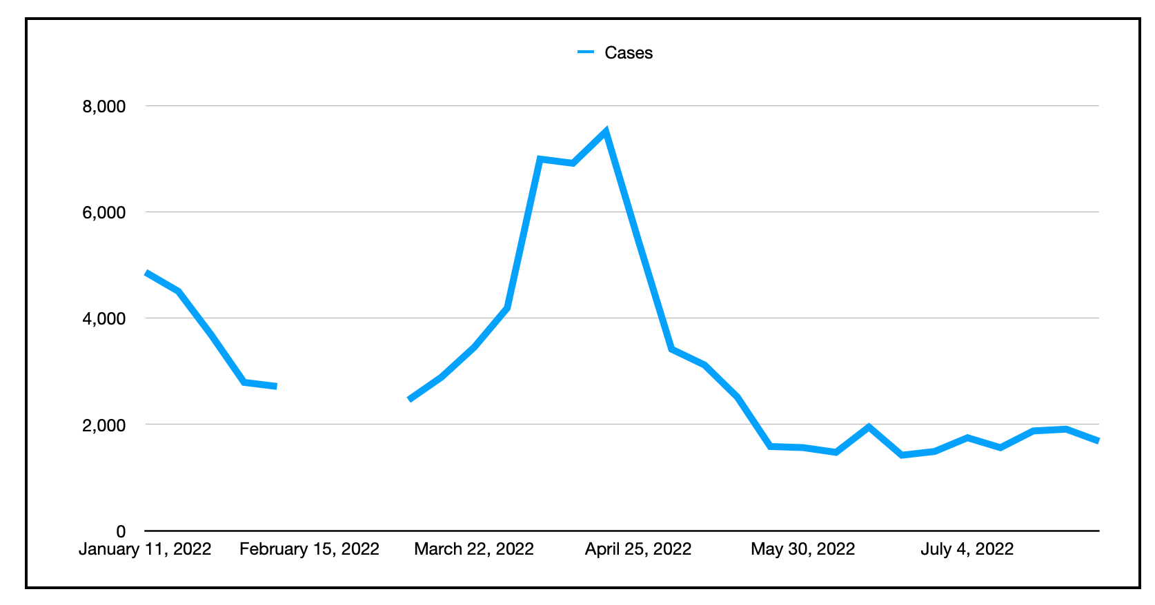 Also, in the same reporting period, there were 1,683 new lab-confirmed (PCR tests) cases. This does not include people who only tested positive with rapid take-home tests or who didn’t test at all.