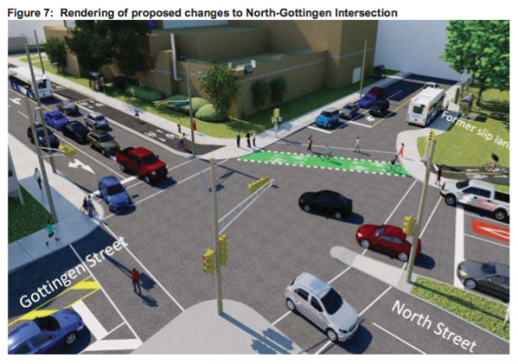 2017年7月的一份人力资源管理人员报告显示,Gottingen和North十字路口的拟议更改,包括在北腿上启用交叉人行横道。