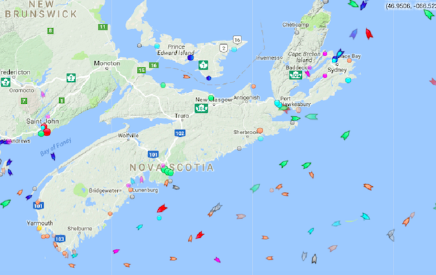 新斯科舍附近海域,周二上午9:30。地图:marinetraffic.com